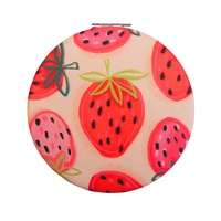 Featuring an array of juicy red and pink strawberries sitting proudly upon a soft, comforting peach base, this double sided pocket mirror is an essential handbag accessory.
